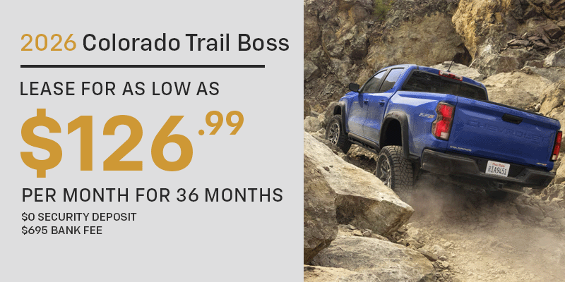 $126.99/month for 36 months. Your payments may vary. Payments are based on stock #26155 with MSRP of $46,495. Based on $14,989 due at signing (after all offers), includes tax, title, tag $799 Conveyance Fee. The dealer conveyance fee is not payable to the state of CT and is negotiable. Includes $500,00 Lease Loyalty & Lease Conquest. Must have a current lease in the household. Includes $500 GM Rewards Card Sales Sign up and Spend - Must qualify and sign up for the GM Rewards card and spent a $1000 on the card. 36 monthly payments total $4,571.64 with mileage charge of $.25/mile over 30,000 miles. Some customers may not qualify. For qualified buyers with GM Financial approval. Other restrictions may apply, see dealer for details. Option to purchase at lease end for an amount to be determined at lease signing. Lessor must approve lease. Lessee pays for maintenance, repair, excess wear and disposition fee of $695 or less at end of lease. No security deposit required. Payments may be higher in some states. Not available with other offers. Vehicle photos are intended for illustrative purposes only.